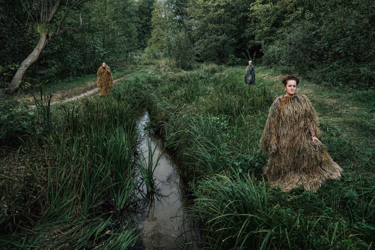 This project resonates with Andy Warhol’s famous project «Camouflage» / Camouflage (1986), where the contrast between the impersonality of camouflage and the bright individuality of the portrait was used. The camouflage motif also appeared in the clothes that Andy Warhol created in collaboration with fashion designer Stephen Sprouse. Camouflage as an abstract pattern offers a number of interpretations: from stealth to courage, from the beauty of an idyllic landscape to the nervous tension of a sniper. Such an allusion shows the heroines of the project in their vulnerability and at the same time as protectors and guardians, whose strength is nature itself.