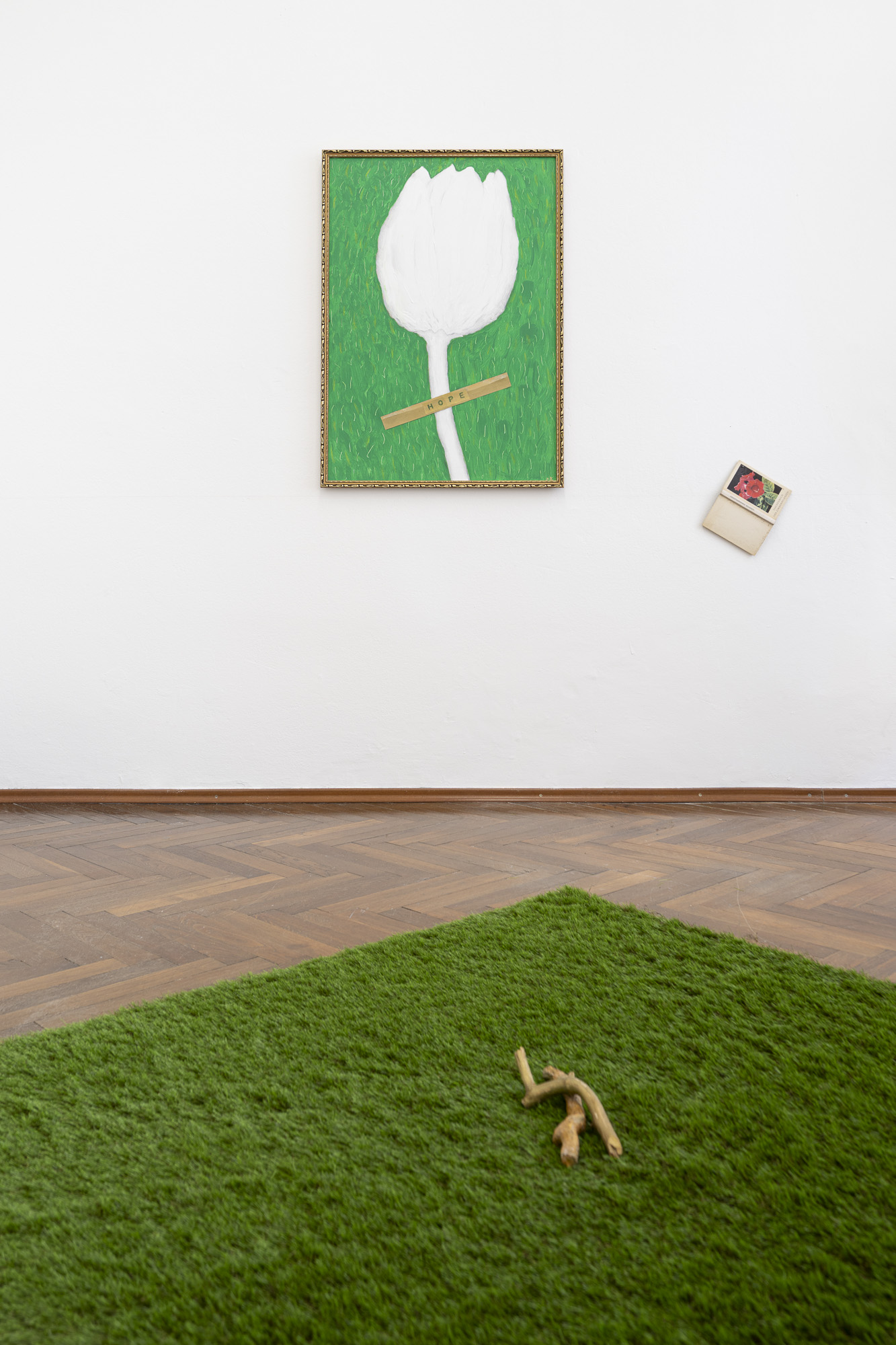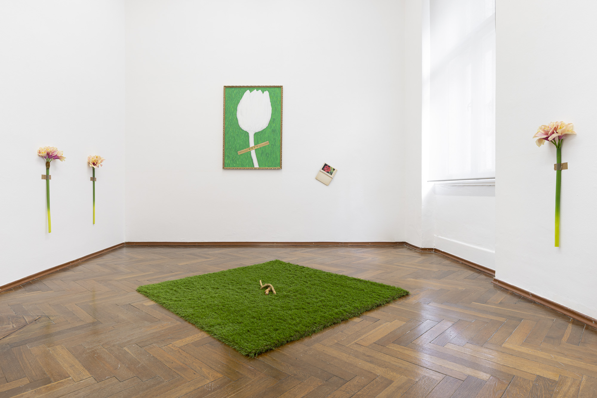 Jana Želibská has created an environment that seems to think and feel at once. It does not present the current cultural situation in Slovakia and in the world descriptively, but condenses it into images that speak of memory and of the horizon of the future. Despair and hope appear here as two motifs of the same composition, two affects of the same reality. Hope is in our hands — as an active, conscious, and shared practice of care.