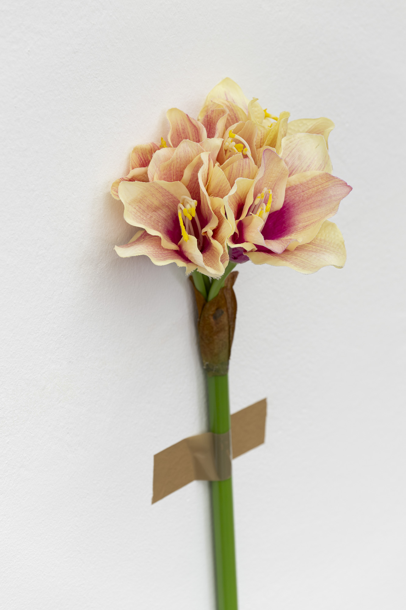 Jana Želibská’s solo exhibition The World. Despair – Hope interprets the world in three images as a disturbed yet creative field of the present. The artist develops her visual language of sensuality, affective intensity, symbolic condensation, and ironic short-circuit. She presents the world as irritable. She articulates despair and hope as two affective poles of a shared reality.